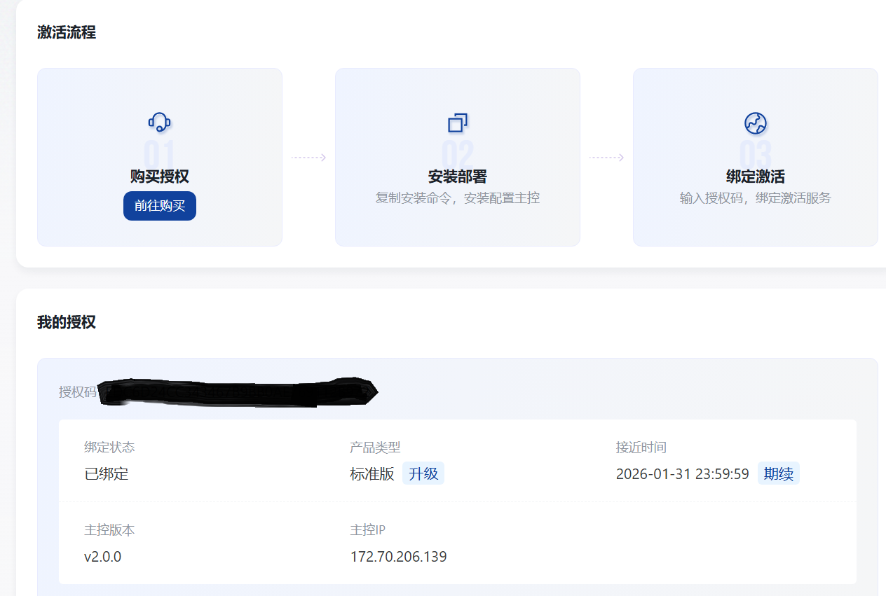 授权码绑定后这里可以看见你所购买的版本及有效时间,也可以操作解绑和换绑。