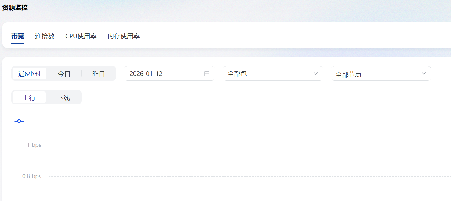 这里可以查看节点的带宽、链接数、CPU使用率、内存使用率这些详细的数据,为以后管理节点提供数据支持。